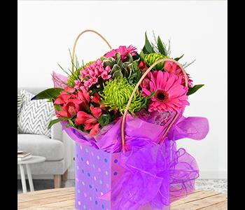 Take a stroll through a mystic wonderland of brandy roses hiding away from fairy freesias and making their way through the forest of purple lisianthus.