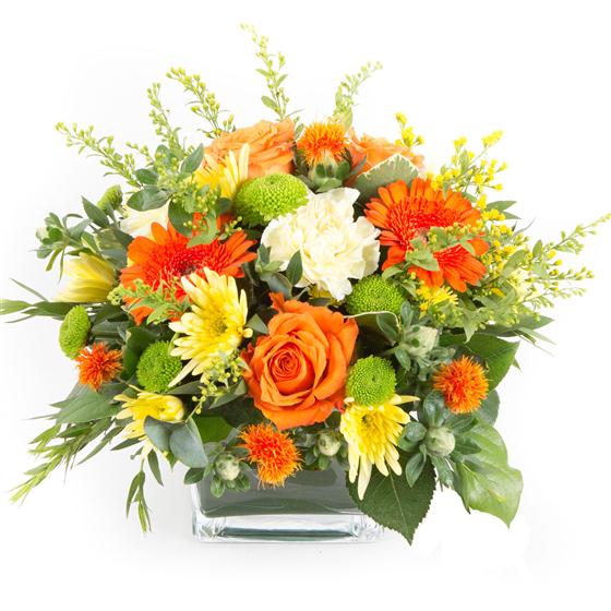 Beautiful cube of fresh flowers. Standard 11 stems, large 15 stems, luxury 19 stems.