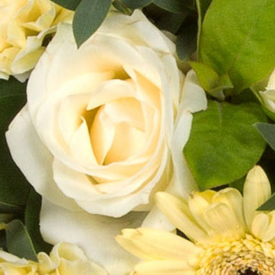 White chrysanthemums form the base of this traditional tribute. Available as pictured with a foliage edge or with a ribbon surround and spray in your choice of colours.